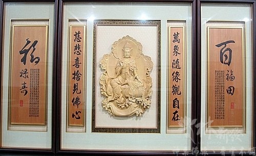 3.雕刻隨緣自在觀音聯+雕刻福祿百福百壽祖先聯