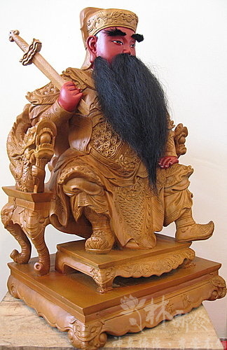 神像-一尺三梢楠木-拖椅-廣澤尊王(郭聖王) 7月 08, 2010 大家安唷^^~~~話說~~有偷看丫倫相簿的人~ 都猜到這幾天會PO這尊咧XD~~ 不要偷看啦!只看照片沒有丫倫啐啐唸不是很無聊叭~呵呵 在分享拖椅的之前~順手附上之前做的一尺六梢楠木跟二尺二梢楠木的給大家唷! 一尺六連椅梢楠木廣澤尊王(郭聖王)~~~ http://tw.myblog.yahoo.com/lin-shinfa/article?mid=7978 二尺二連椅梢楠木廣澤尊王(郭聖王)~~~ http://tw.myblog.yahoo.com/lin-shinfa/article?mid=10611 郭聖王原本姓郭名洪福~ 在民間又叫保安尊王、聖王公等~~~ 其實廣澤尊王的故事應該可以算是眾神佛裡相當有趣的~~~ 當郭聖王當年還是少年時, 曾受一地理師傅傳授其功夫~~ 而後來在有一天郭聖王盤地而坐時, 突然得道神化,那時他才十六歲~~~ 最有趣的地方則是~~ 在我們民間普遍稱呼郭聖王為翹腳聖王(台語), 其源由是因為當郭聖王得道升天時, 郭聖王的母親不捨兒子要離開她, 所以就拉了郭聖王一把, 剛好就是把郭聖王的左腳拉下來~ 這也就是為什麼我會後世雕刻神尊是郭聖王都是左腳在下的原因囉! 再來先特寫丫倫特別製做的拖椅唷!很精細叭^^~話說獅子也是可以拿起來的啦XD 廣澤尊王就是那種威嚴中又帶點可愛的fu厚~沒辦法~當年他才十六歲囉! 這組拖椅相信大家都很喜歡叭~ 呵~因為工很細~所以...超難做的啦XDXD~ 請大家別一直叫我做拖椅咧~這個要量產有點難度~~太厚工了丫~~ 當然~金身的雕刻跟法相更是重要唷!雖然是童子法相~~ 不過其莊嚴感還是一定要展現出來~才能完成~"神像雕刻藝術之傳承" 突然很想講這句話~呵呵 法相特寫^^ 金身錦雕特寫^^ 話說~~對不起大家~丫倫變成"富堅"了 哈哈~~林小品傑的七個月特集目前作者外出取材~ 這兩天一定會補上來的啦! 請大家再忍耐一下厚~~~丫倫會努力的 閱讀完整內容
