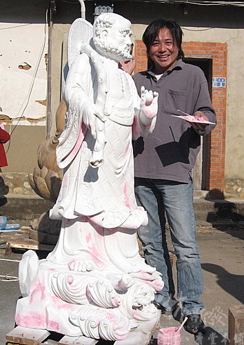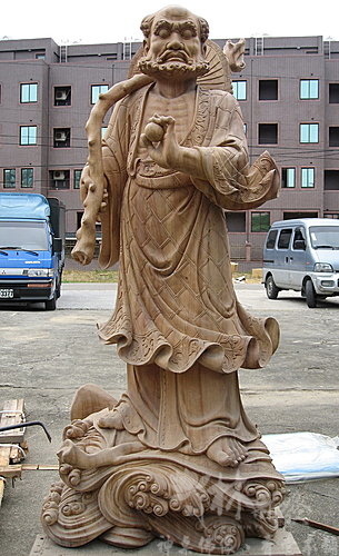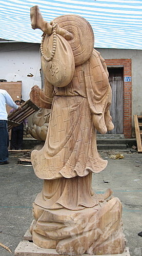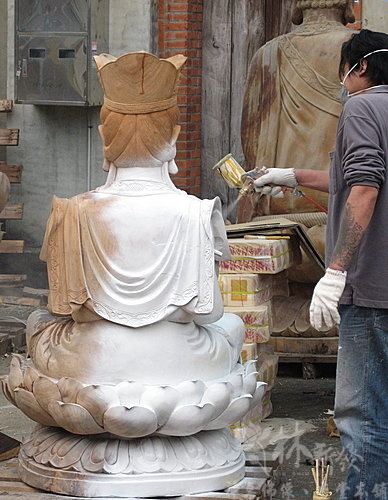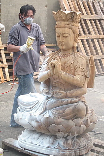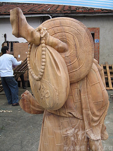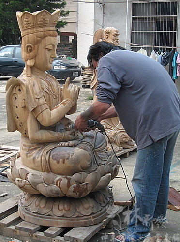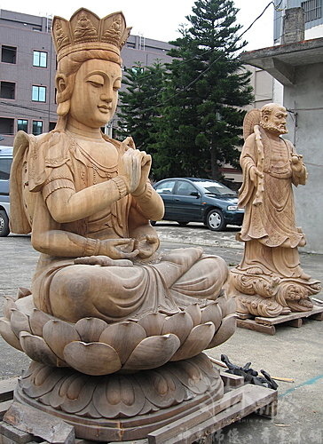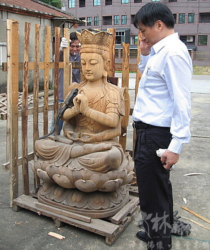 那是因為我們林新發做的大神像,堅持品質,所以一定要用整塊大木材做,