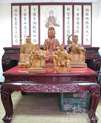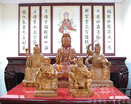 大家安唷^^~~~五尊神像分別是:福圓大士觀音、道德大天尊、九天玄女娘娘、降龍濟公活佛、關聖帝君~~