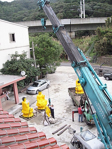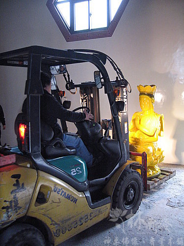 當然堆高機要先掉到樓上~~七尺神像的重量就算十個大人也搬不動丫~"~