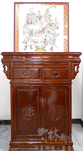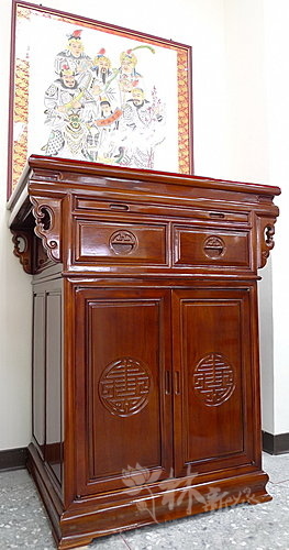 神桌-二尺二紫檀木-美喬式神桌+五路財神進寶聯(大園吳董留檔))