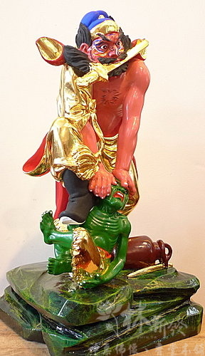神像-一尺三紅豆杉-捉鬼鍾馗 (白身及安金後)