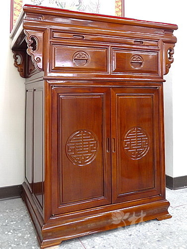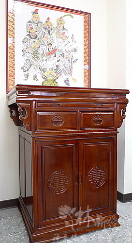 神桌-二尺二紫檀木-美喬式神桌+五路財神進寶聯(大園吳董留檔))
