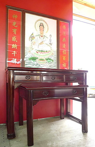 神桌-五尺一紫檀木-素面明式神桌(觀音神聯)-林口文山市場