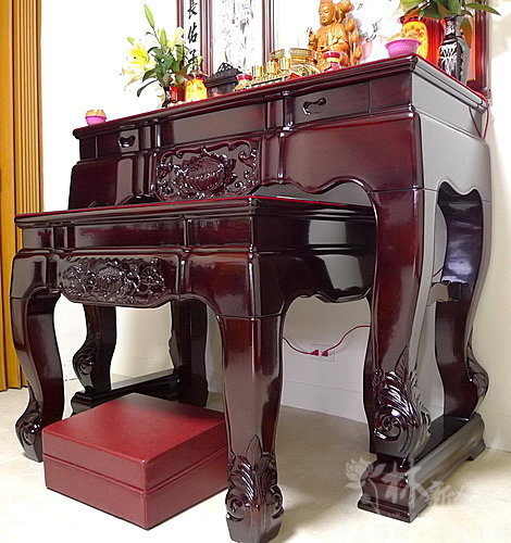 五尺一烏心石立體雕刻蓮花神桌整體照,