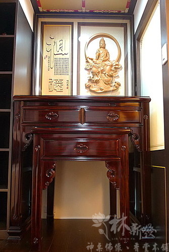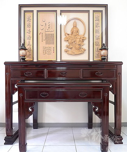 神桌-五尺一-黑紫檀-新式明漢綜合神桌(客戶留檔)-圓月觀音聯、手繪觀音聯