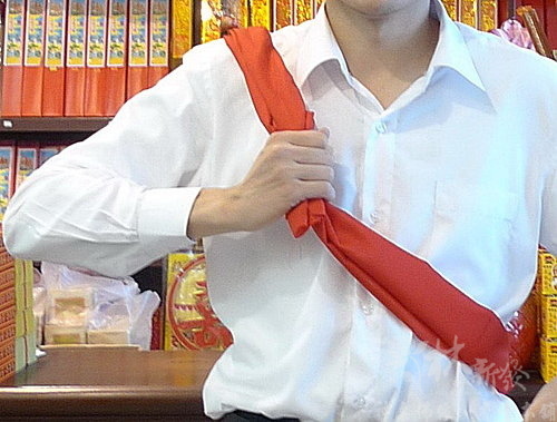 墘坤圈繞脖子,右手握住墘坤圈,如下圖(別懷疑~這張照片是丫倫本人)