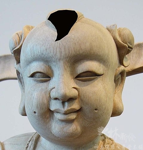 太子法相如圖,大約五~六歲左右。頭髮中間,旁邊兩個包包頭。