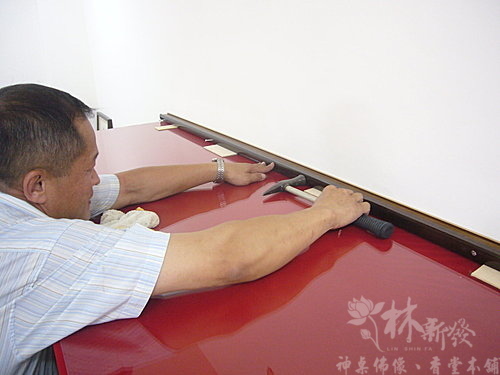 神桌-蘇拉威西黑檀-七尺桶桌式神桌+全手工金箔觀音聯(歐風大郡)-釘神聯流程簡介