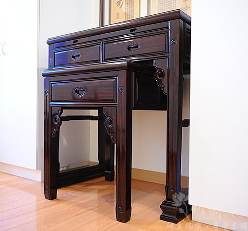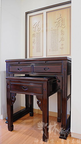 神桌-三尺六黑紫檀木-明漢綜合新式+觀自在雕刻神聯(新店江先生)