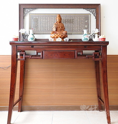 神桌-四尺二紫檀木-日式風神桌+心經觀音聯(土城安養院)