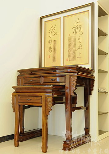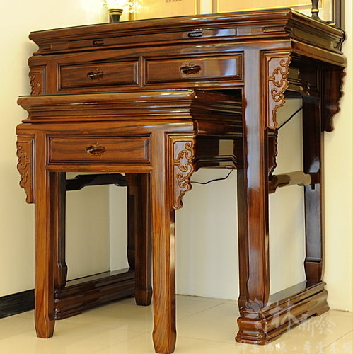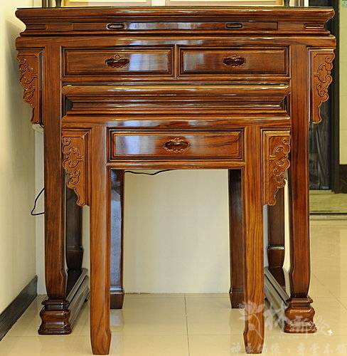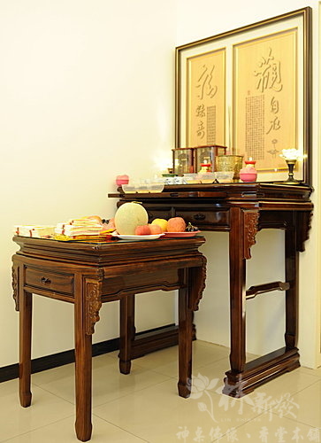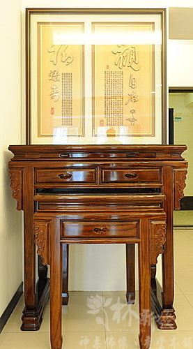 神桌-三尺六紫檀木褐色-圓滿明式+觀自在雕刻神聯-中和中興街