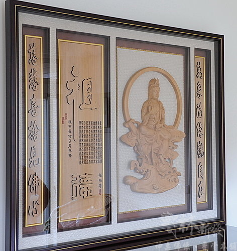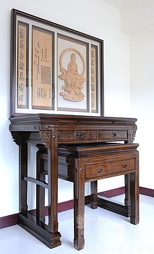 四尺二雞翅木明式神桌加上圓月觀音雕刻聯完成照