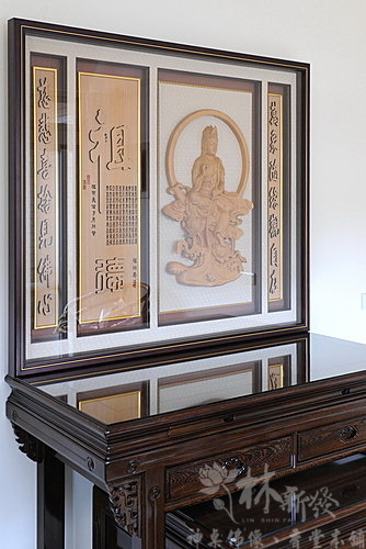 神桌-四尺二雞翅木-明式神桌+圓月觀音雕刻聯(豐原李先生+學姐)