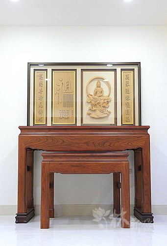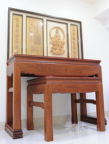 神桌-五尺八花梨木素面大腳神桌(全台灣手工)+圓月觀音雕刻聯-中壢成章一街張先生