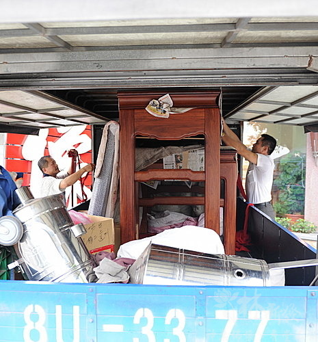 上車囉!還要用很多的被子保護,最後再綁好固定囉!