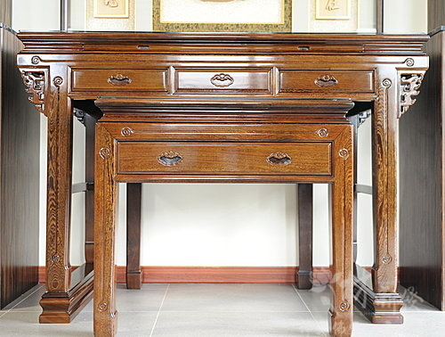 神桌-五尺一雞翅木明式神桌+踩蓮水月自在觀音雕刻聯(南崁路二段曾先生)