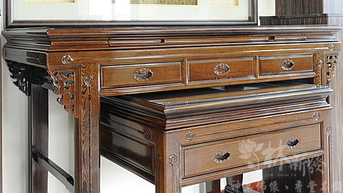 五尺一雞翅木神桌大家應該很熟咧~~重點轉移到我們的這副特製雕刻神聯好咧^^