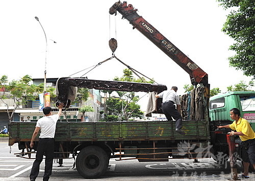 小心翼翼慢慢吊上車,整個過程都十分仔細且緩慢,就怕一不小心出了差錯