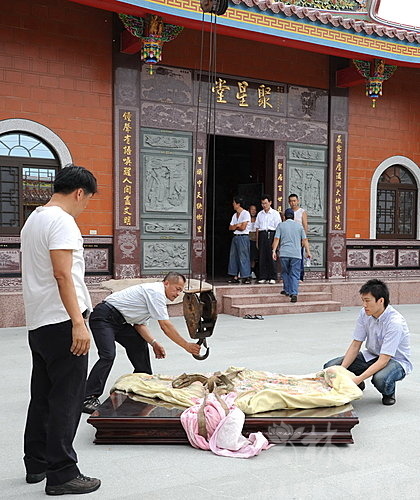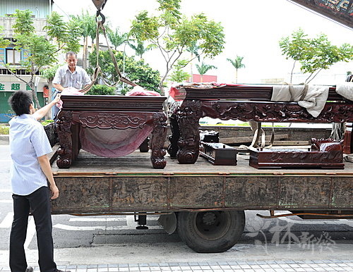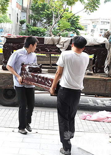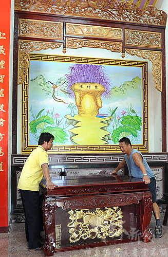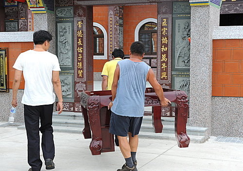 九尺九神桌的重量可是不容小覷的,要動用很多有力的壯丁多名呀~