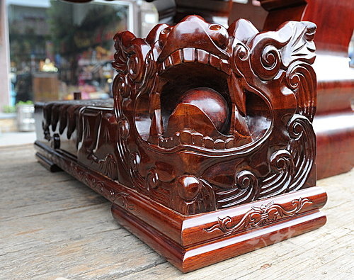 連神桌的獅頭墊座刻工都不馬虎,整個威呀~