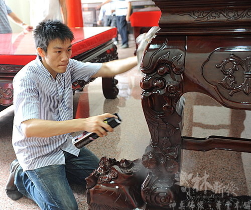 丫倫正在幫神桌打蠟整理,整個表情好認真喔 呵呵.... 都不知道小蕙正在一旁偷拍呢