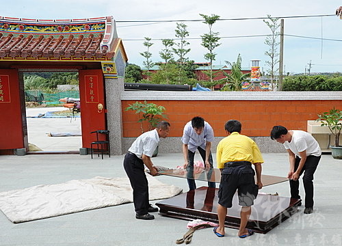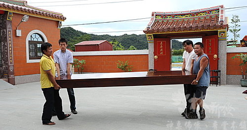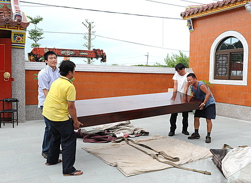這可不是四名壯丁可以負荷的重量哩,可要動用到八個男丁才能放上來喔!