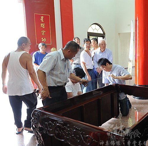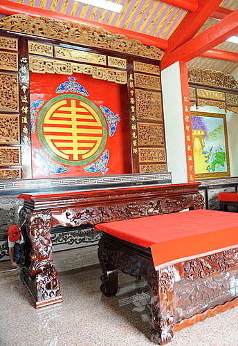 配合著祠堂本身整體裝璜與神桌紅絨布相互呼應下,整個就是喜氣洋洋