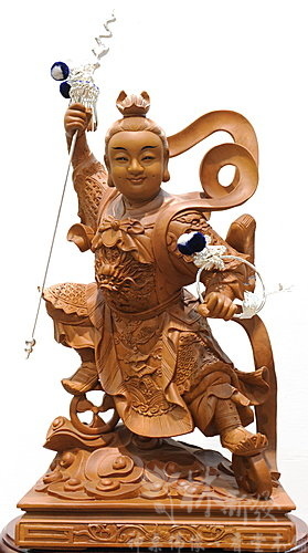神像-一尺三樟木-踩雙輪太子(畫臉)-還有多訂製一尊八吋八的唷!