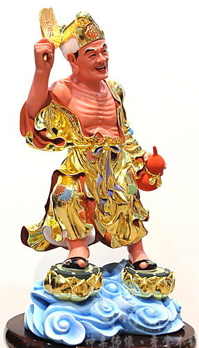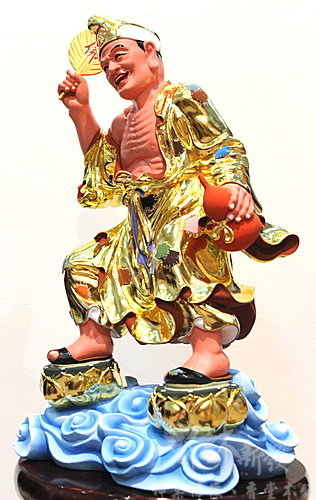 神像-一尺六檜木按金-自在隨緣濟公(踩雙蓮)