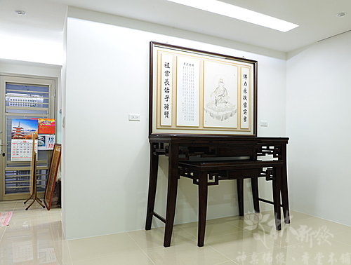 這種白底的手繪觀音聯,如果我把神桌拍亮的話~~神聯就會白白一片什麼圖都看不到咧= =