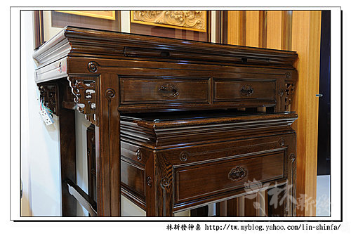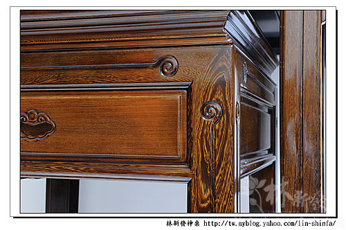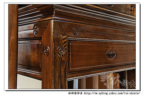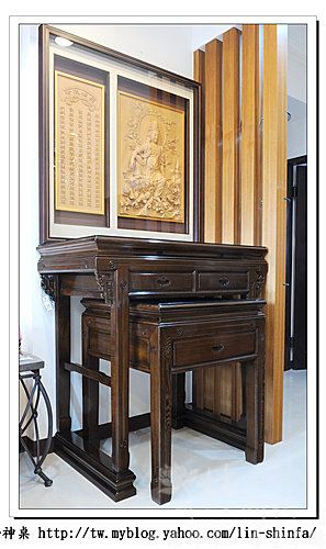 不過考量到在空間上佛櫥式會比較有壓迫感的關係~~所以客人還是希望能用像雞翅木明式神桌