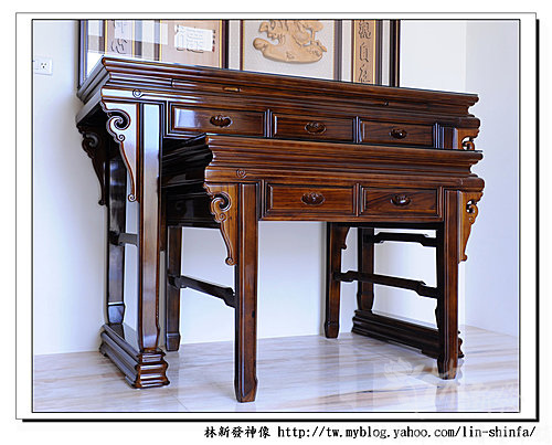 再來要承認一下丫倫有用消光鏡拍唷!因為手工生漆是做亮面的~~所以神桌反光很強