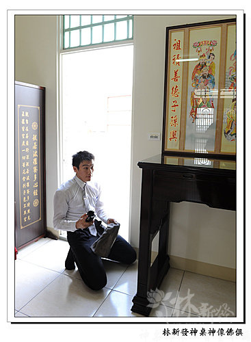 下面這張是游先生在準備錢水跟米桶的~