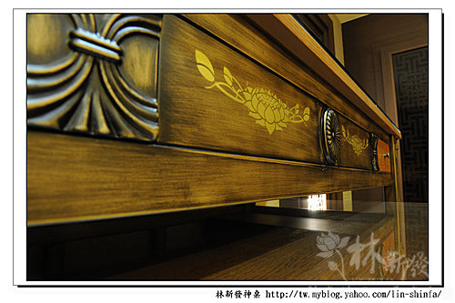 在古銅神桌上加入了蓮花雕刻唷!現場的燈光偏黃光~~所以顏色有點跑掉咧~"~