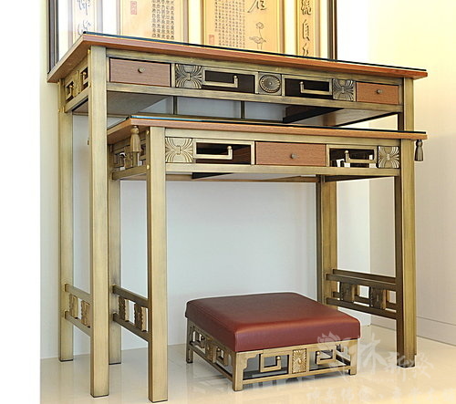 神桌-五尺一古銅神桌(蓮花體)+心經聯(桃園富春山居)