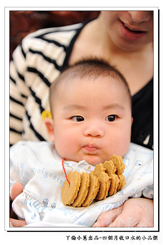 媽咪~~我好想吃餅乾了唷!可以快點開始收口水嗎?不然我要吃你的手囉!