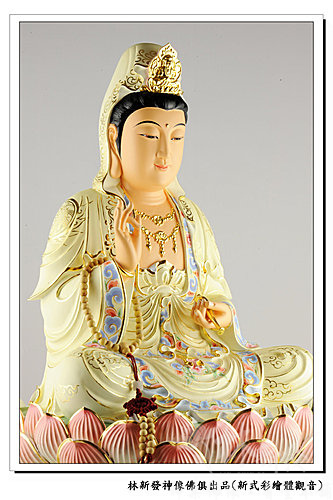 這尊菩薩看起來很像白衣~~但其實做法又不太是白衣咧~~算是用淡彩的方式來表現出白衣觀音的莊嚴感~~~