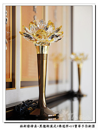 配上LOTUS金黃水晶燈+梢楠木古典款公媽龕~