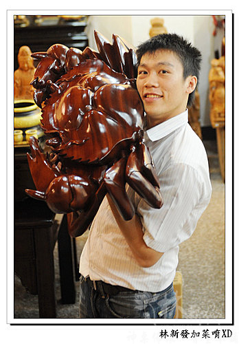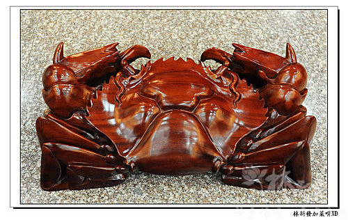 話說這隻螃蟹可是花梨木一體成形雕刻的唷!