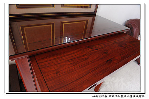 神桌-四尺二紅檀木-元寶素面漢式神桌+佛道禪心雕刻聯(林口長庚宿舍)