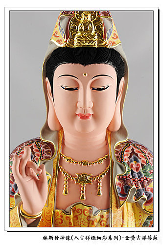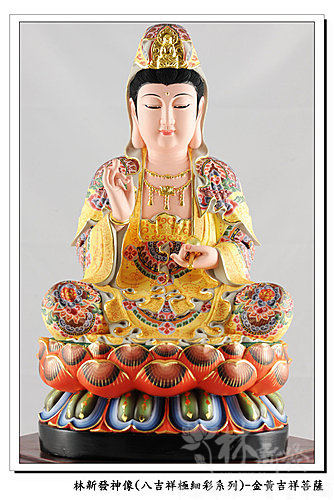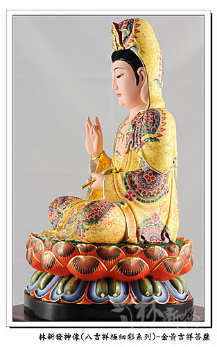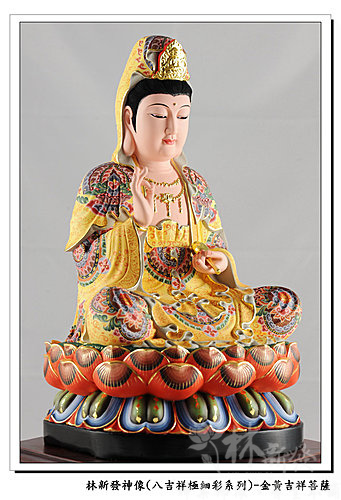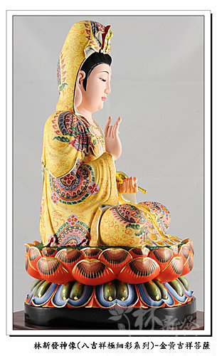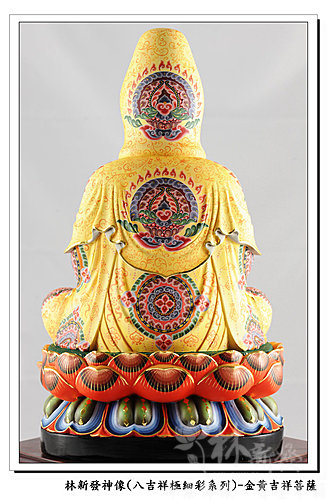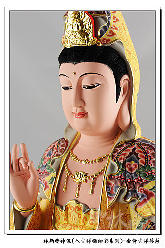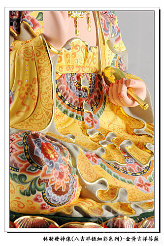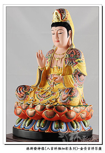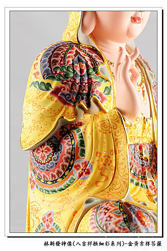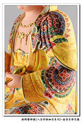 神像一尺三樟木(八吉祥極細彩系列)-金黃吉祥菩薩