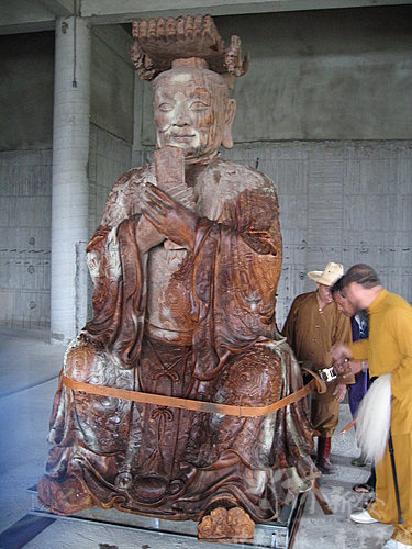 目前十二尺的大佛跟天公都做完底色的擂金色了