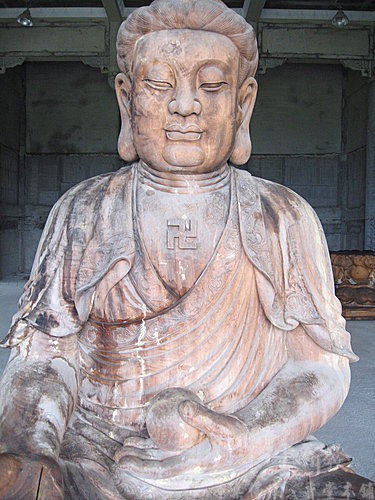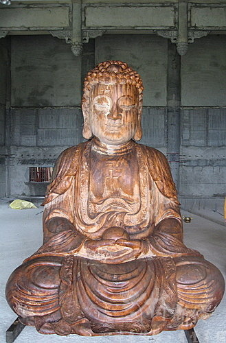 目前十二尺的大佛跟天公都做完底色的擂金色了