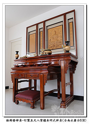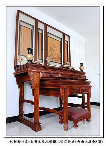 神桌-五尺八紫檀木(本色)-訂製明式神桌+檜木自在觀音雕刻聯-台南永康余先生