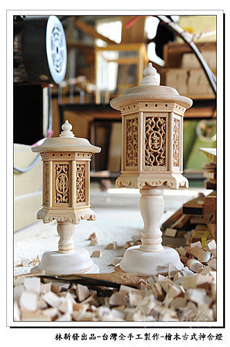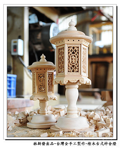 台灣手工檜木神舍燈~丫倫在完成的時候還有特地在我們工廠把完成的白身照片給拍起來囉~