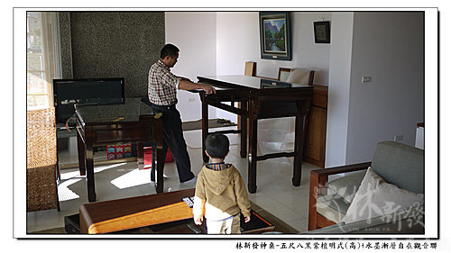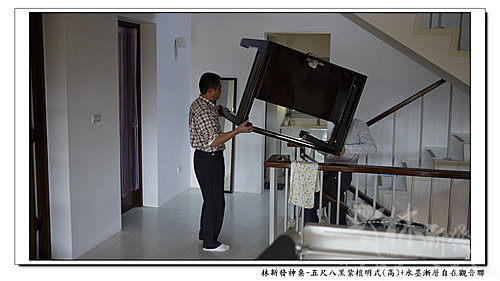 丫倫正在搬神桌下車唷!五尺八的黑紫檀神桌~~重量還真的是有一些咧~~