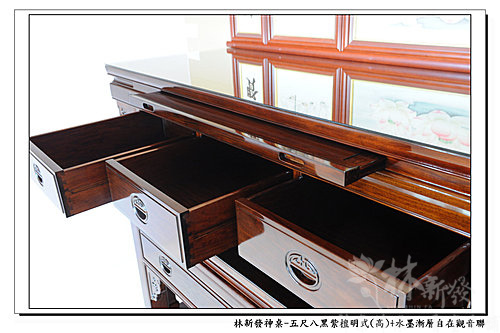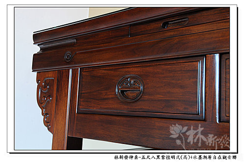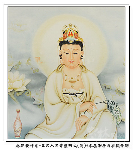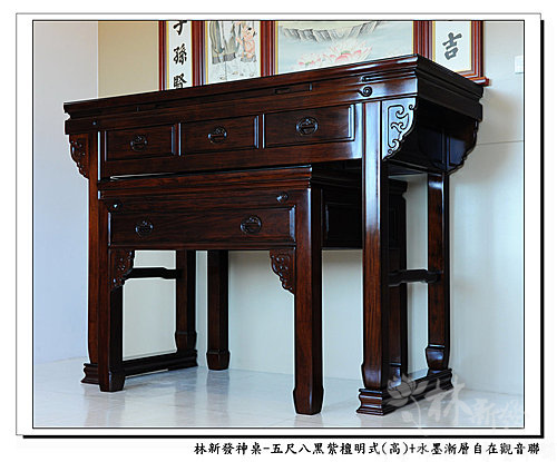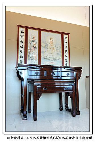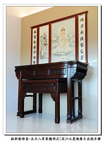 神桌-五尺八黑紫檀明式神桌(高)+大自在觀音手繪聯(水墨漸層)
