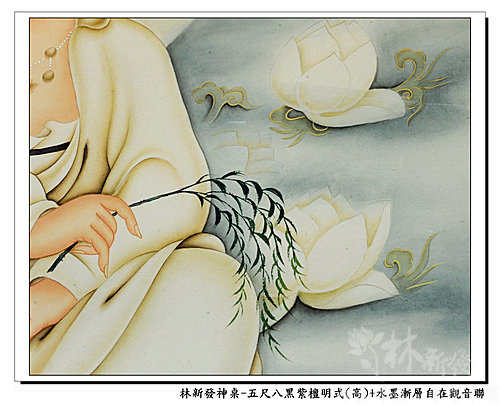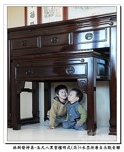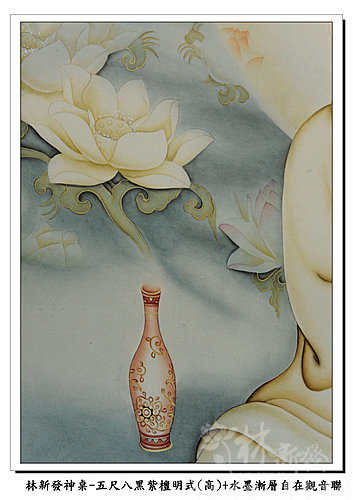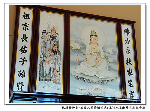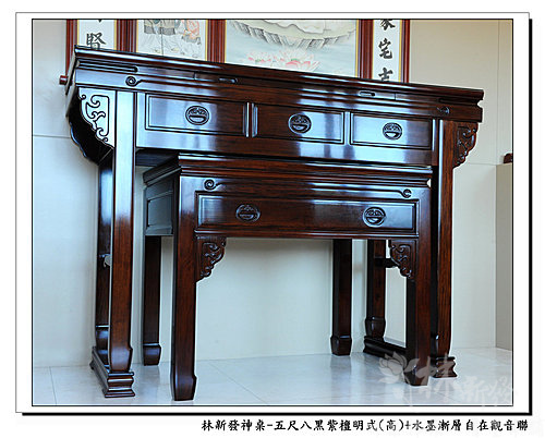 神桌-五尺八黑紫檀明式神桌(高)+大自在觀音手繪聯(水墨漸層)
